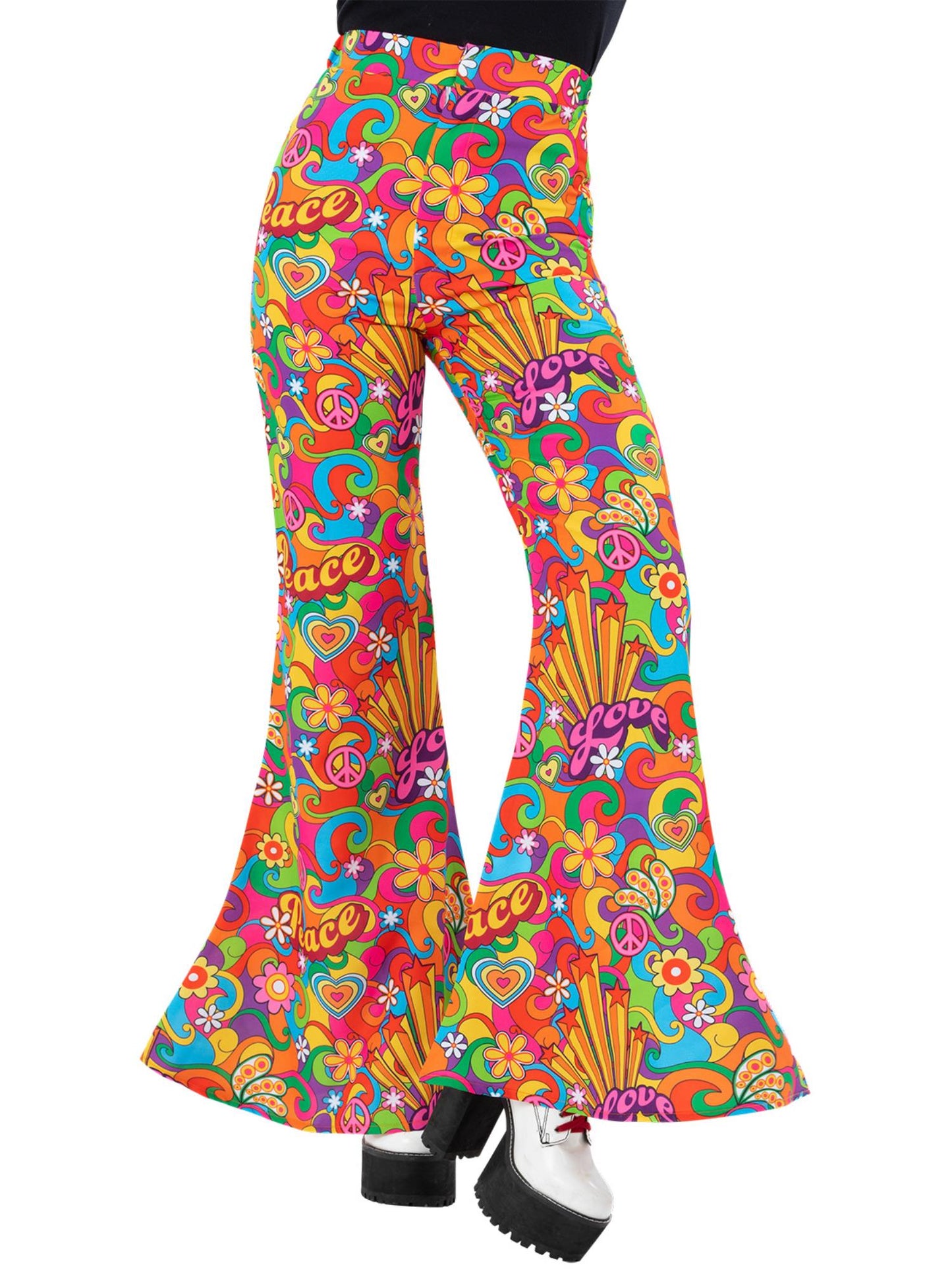 Ladies Rainbow Peace Flared Trousers, Stretch Fabric