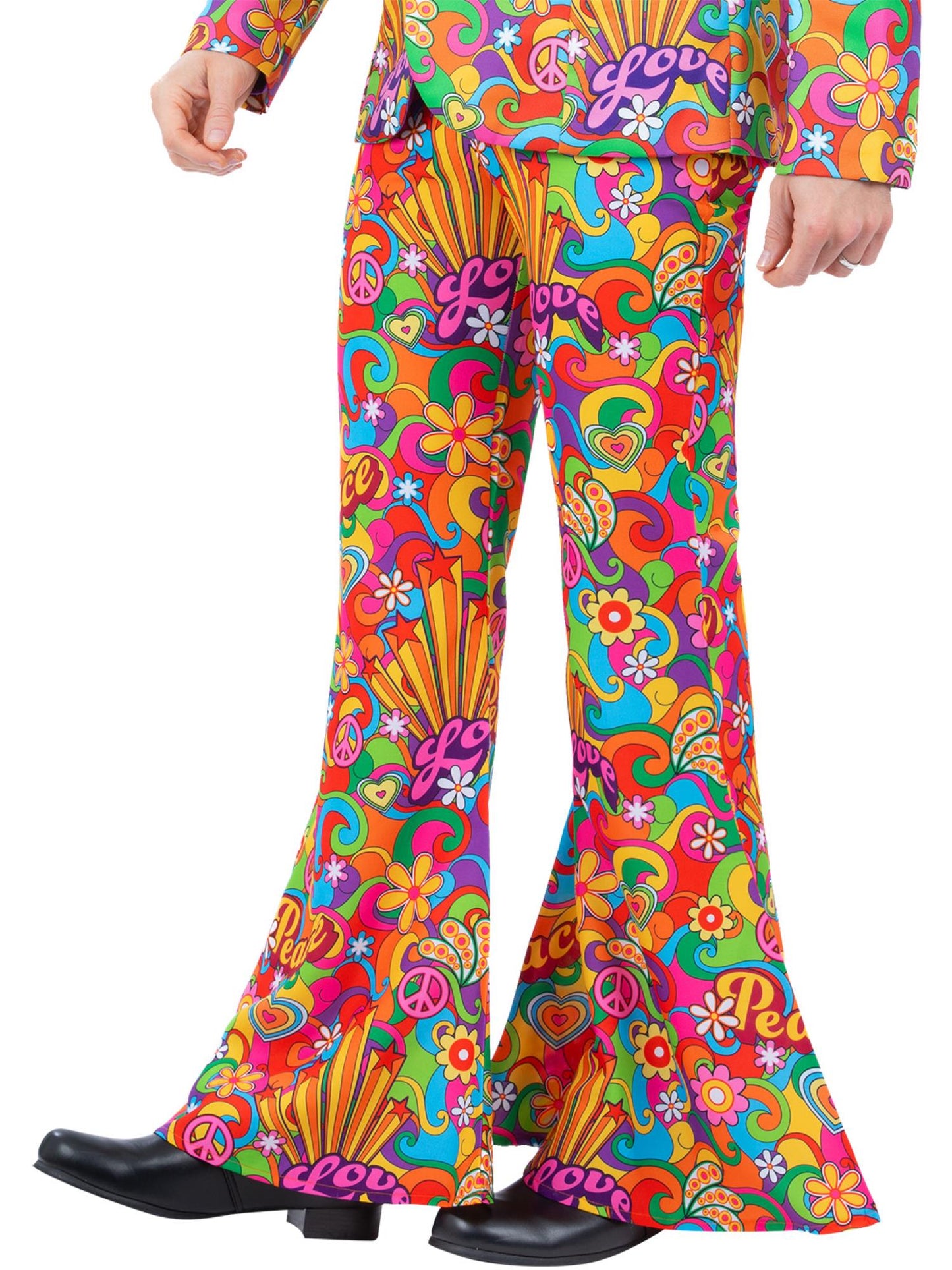 Mens Rainbow Peace Flared Trousers, Woven Fabric
