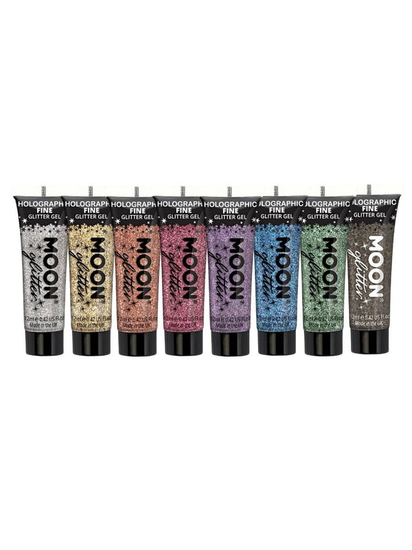 The super fine, holographic glitter will brightly reflect the colours of the rainbow when caught in the light. They come in a range of 8 colours, perfect for finishing off any fancy dress or everyday makeup look.