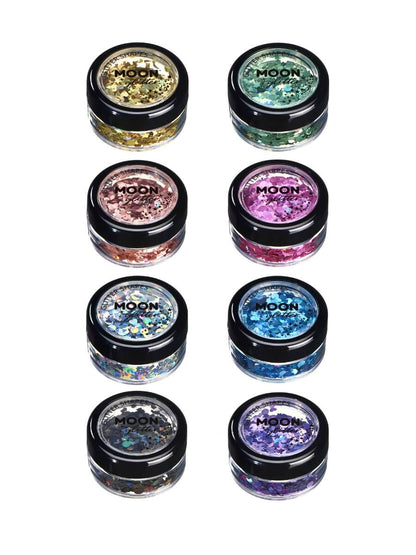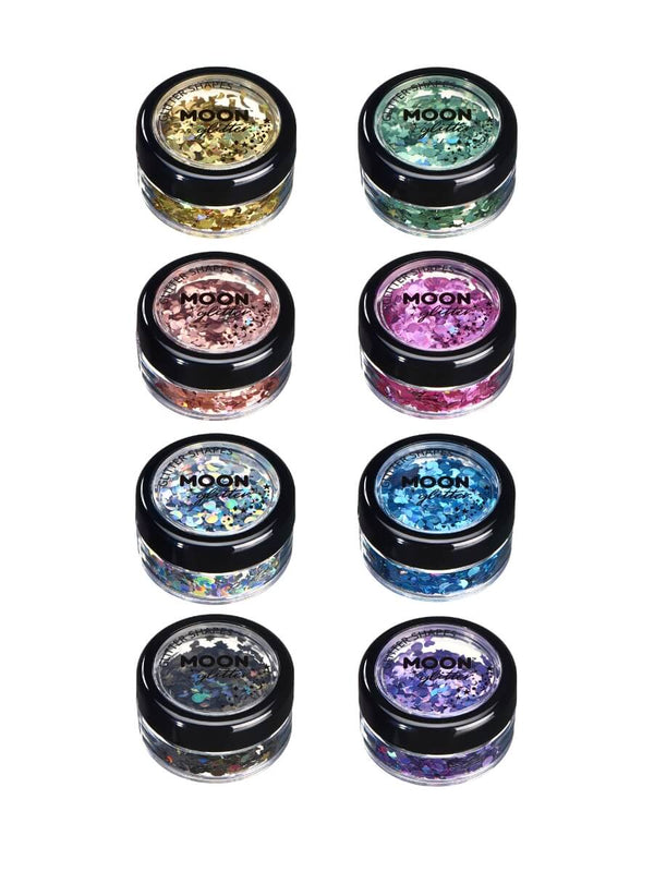 When caught in the light, Moon Glitter Holographic Glitter Shapes by Moon Creations brightly reflect the colours of the rainbow. Making them the perfect finishing touch for a stand out makeup look!