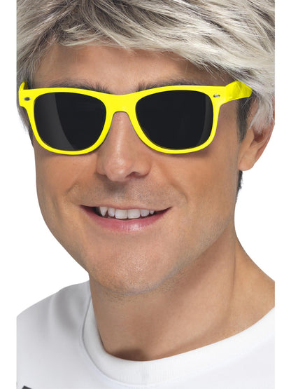 Complete your 80s fancy dress costume with the Neon Glasses. They come in assorted neon colours.
