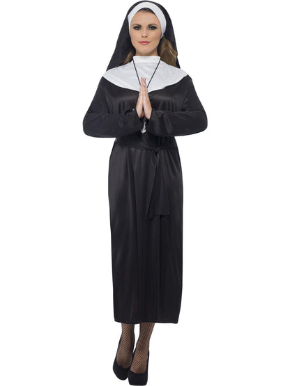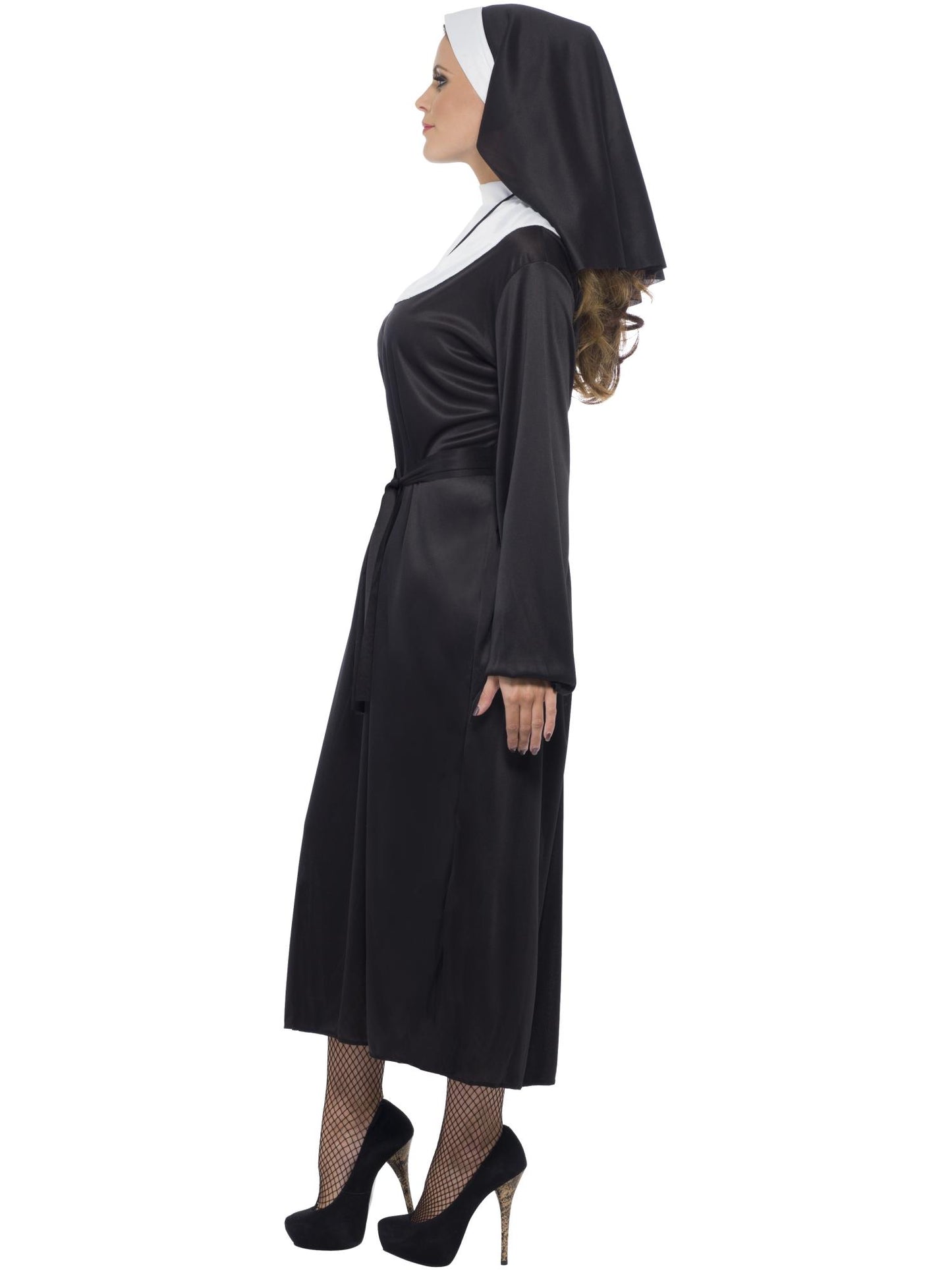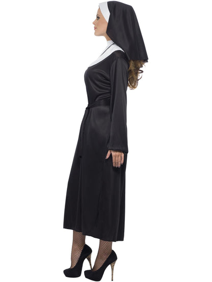 Nun Costume, Black, with Dress, Belt & Headdress.