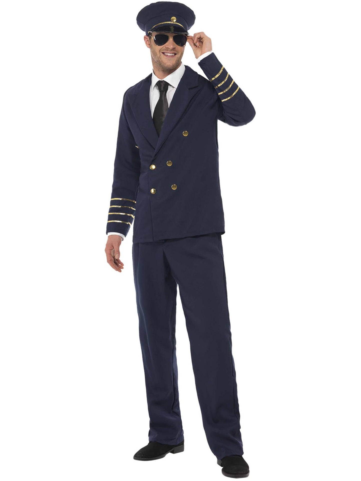 All aboard? The Pilot Costume is perfect for men. This uniform inspired fancy dress costume includes a jacket, trousers and hat. Complete the look with the Aviator Specs.