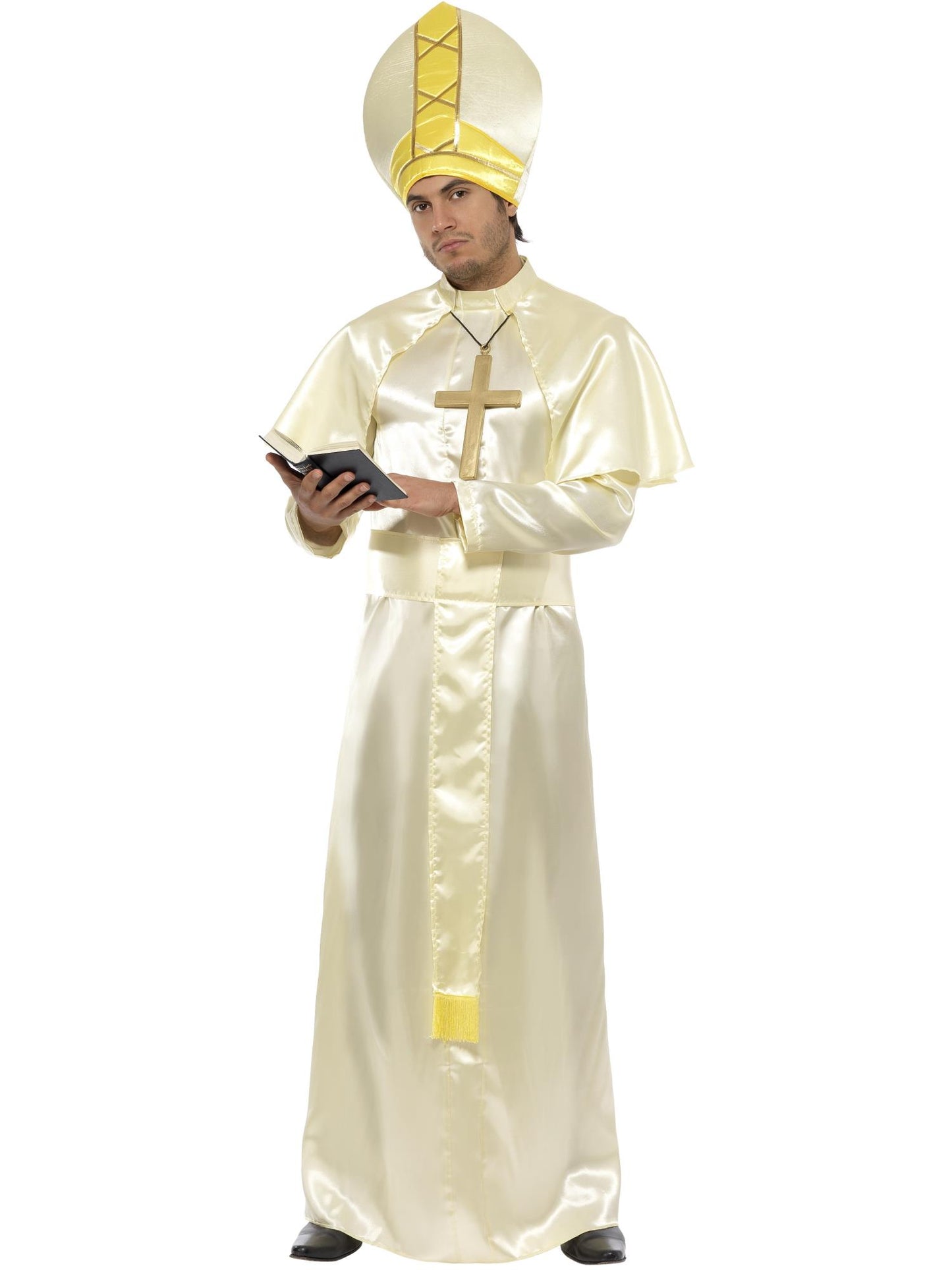 Guarantee your place in Heaven with the Pope Costume. This male fancy dress costume includes a robe, sash, hat, necklace and cape.