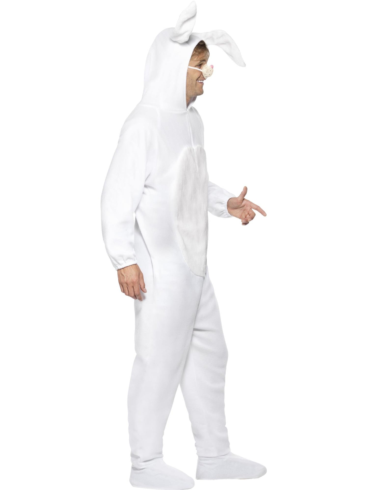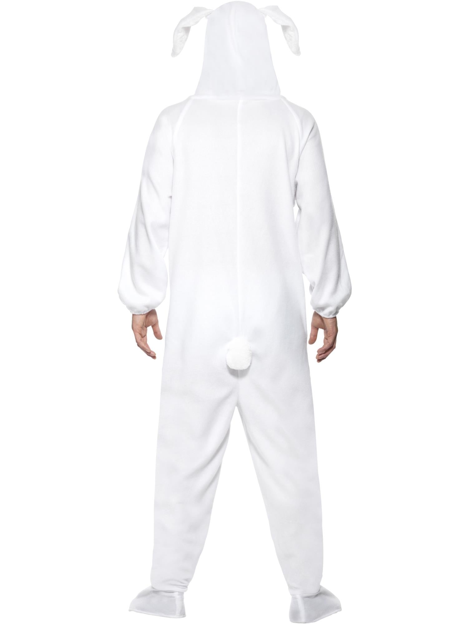 If you've ever wanted to dress up as a white bunny, this Rabbit Costume is for you! Ideal for Easter celebrations or any fancy dress party, this easy to wear all-in-one jumpsuit is both super-cute and super-comfy. The soft-to-touch, long-sleeved outfit slips on easily with a zip fastening at the front, and an extra-fluffy white tummy patch adds to the fabulously huggable factor! Attached foot covers create brilliant bunny feet, and the attached hood ramps up the cuteness overload with its attached 3D, long, floppy rabbit ears. The fluffy white bunny tail at the back is a fun addition, and the included nose with whisker detailing adds the perfect finishing touch to a great fun outfit that's ideal for men, women, and wannabe rascally rabbits or Easter bunnies everywhere!