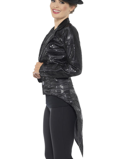 Sequin Tailcoat Jacket, Ladies, Black.