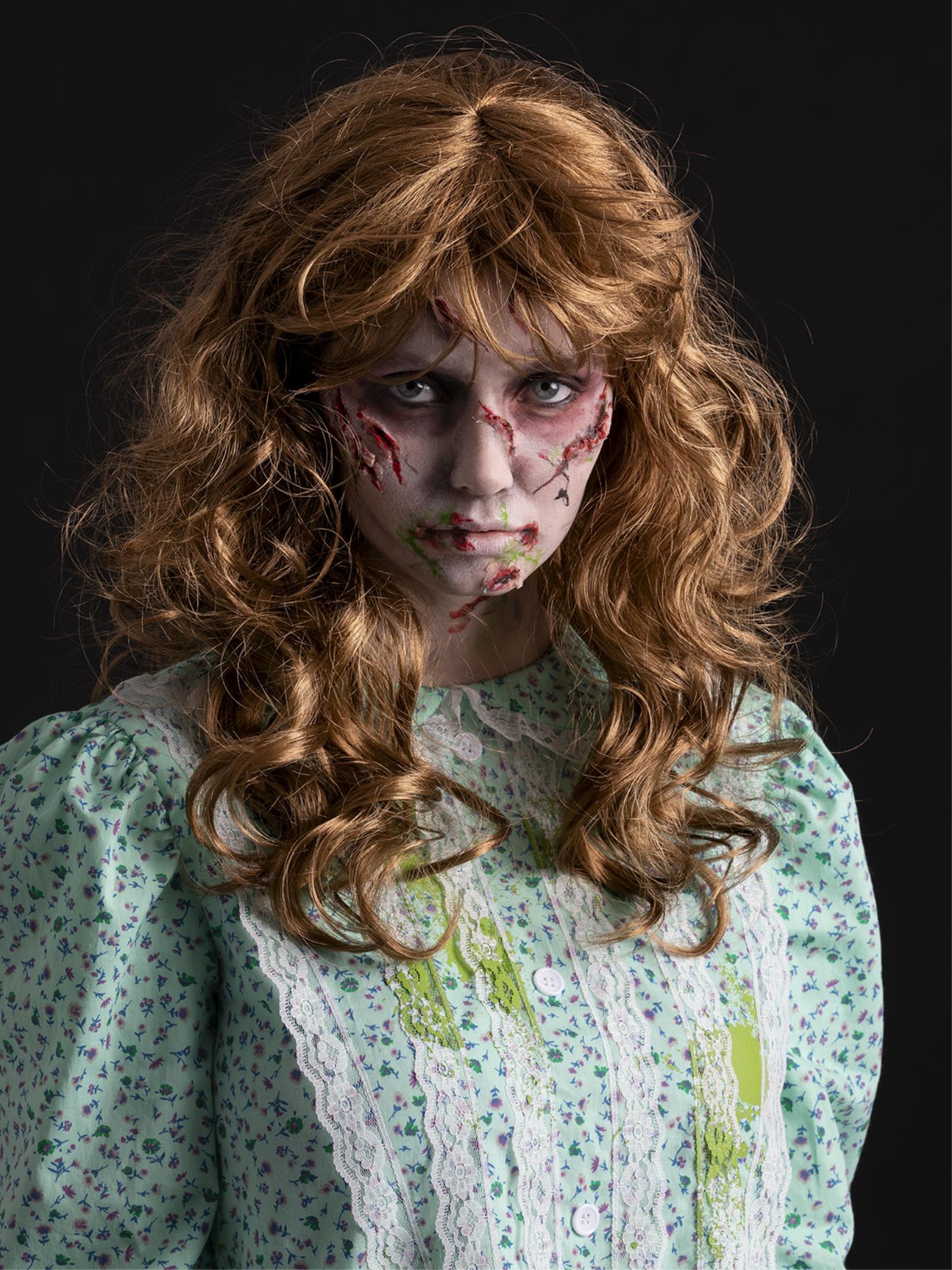 Terrifyingly realistic, this textured wig brings the iconic horror movie character, Regan, to life and will give everyone chills this Halloween.