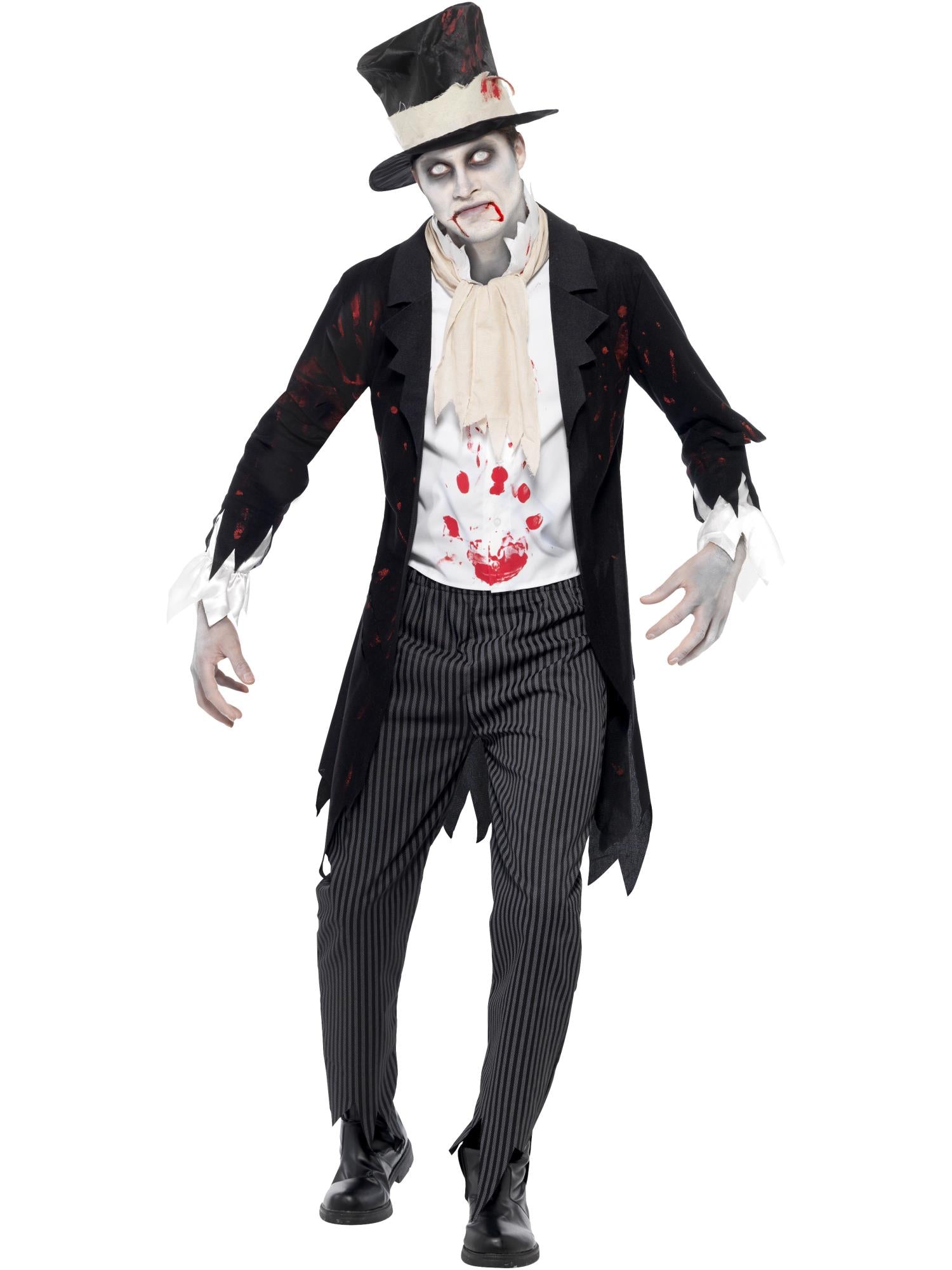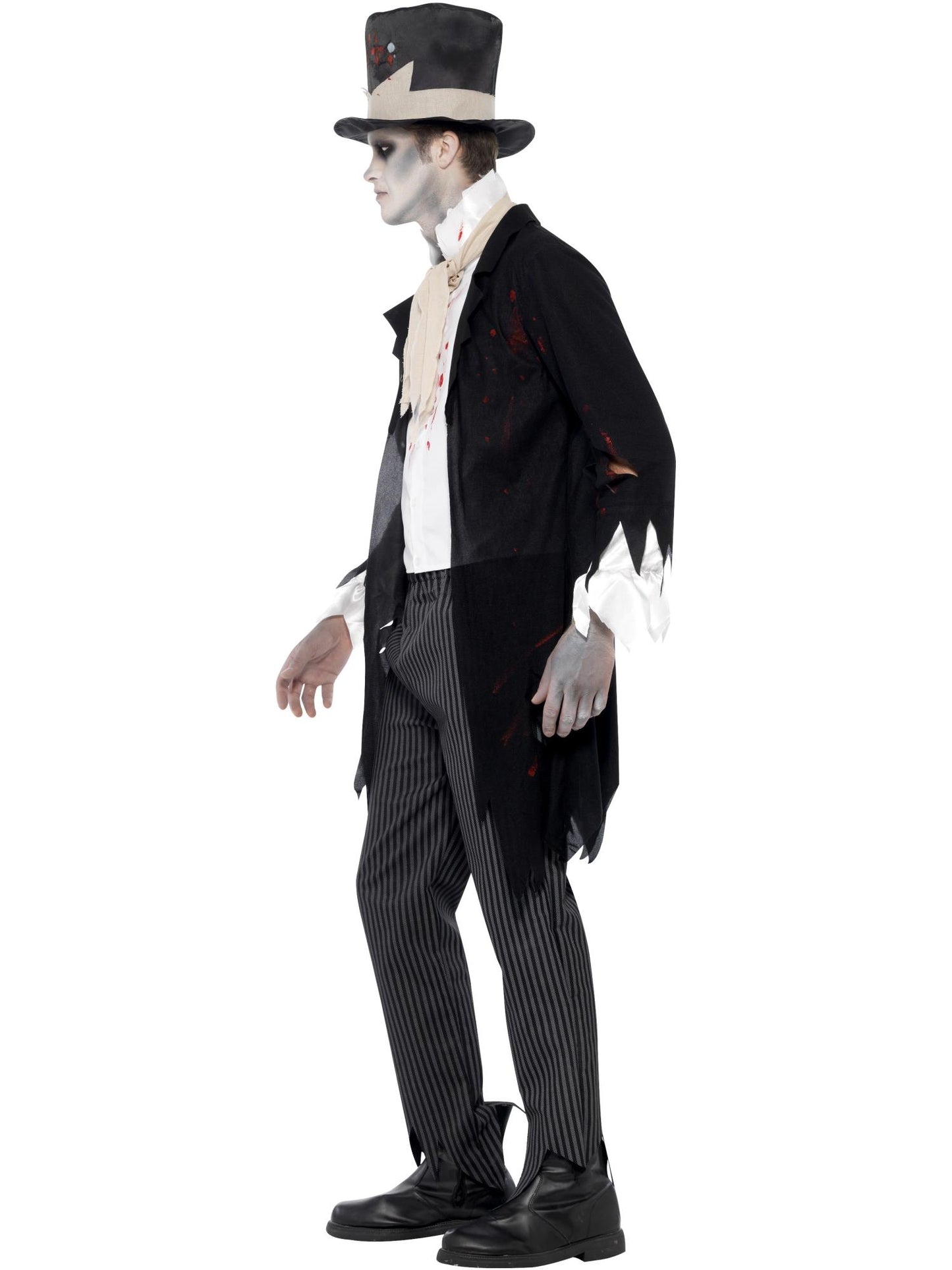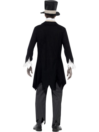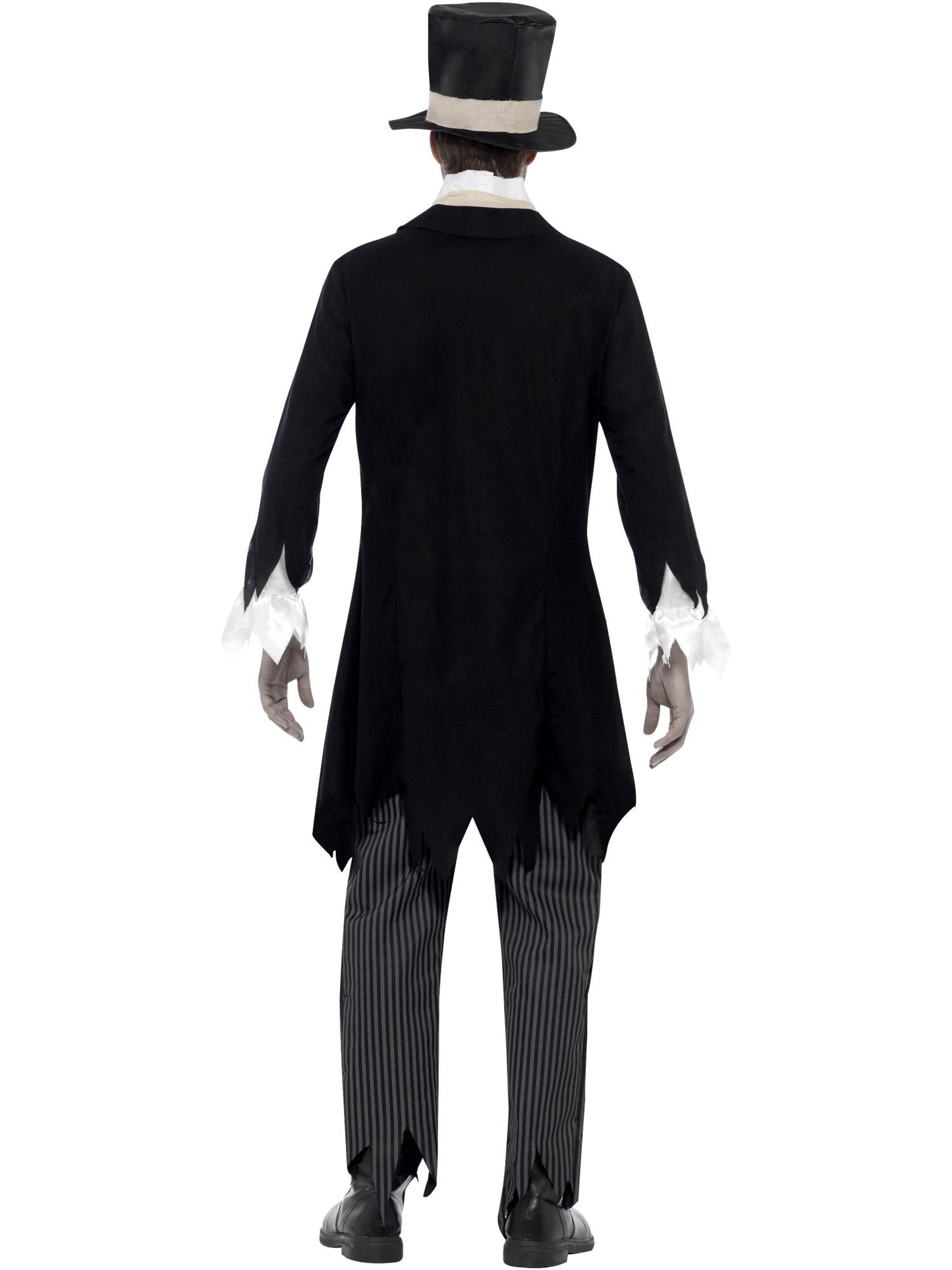 Men's Till Death Do Us Part Zombie Groom Costume, Black, Jacket with Waistcoat, Scarf, Trousers and Top Hat