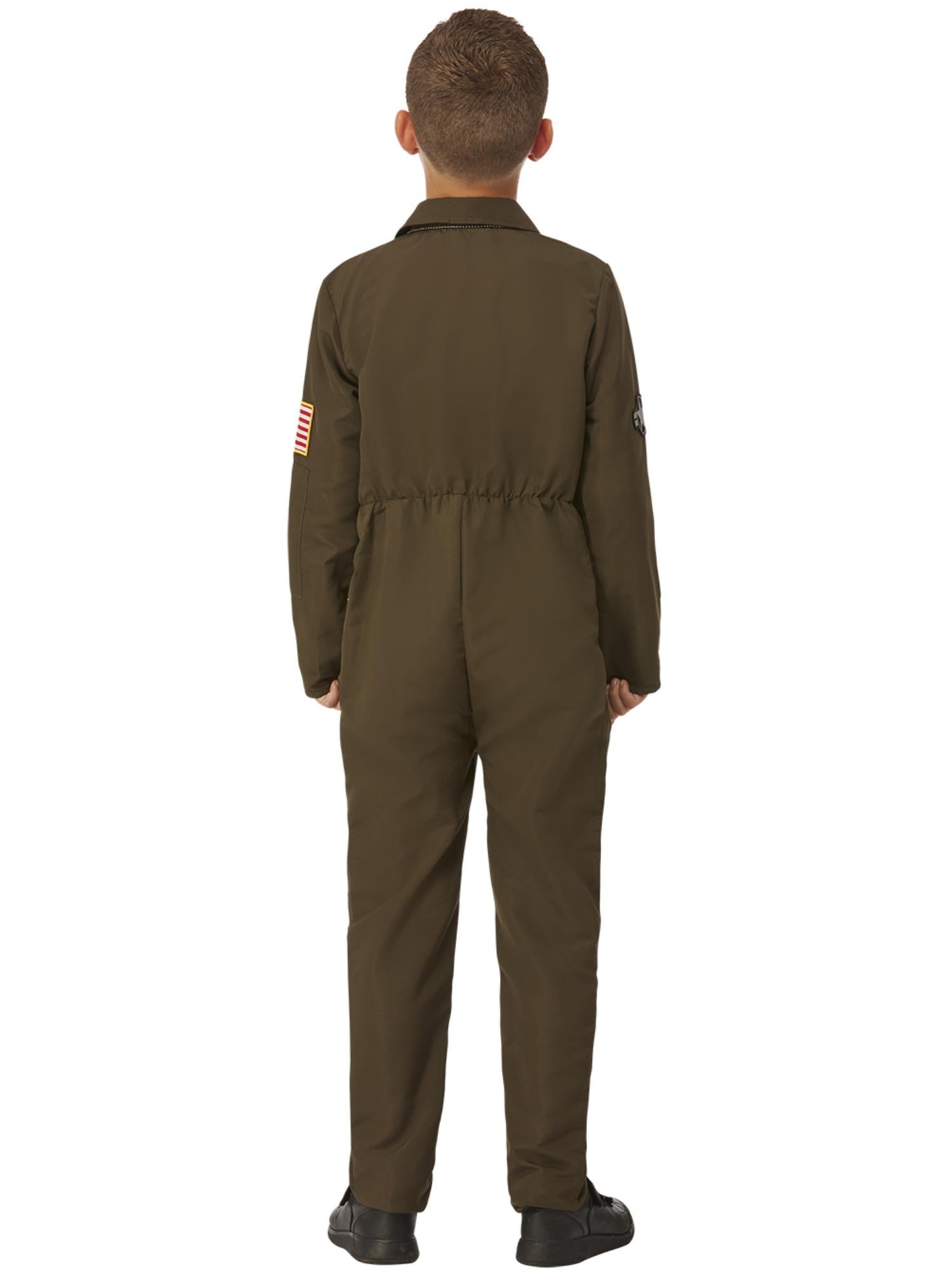 Top Gun Maverick Child's Aviator Costume, Green, with Jumpsuit & Changeable Name Badges