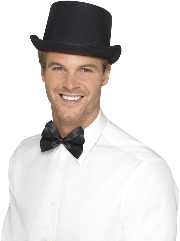 Need a black top hat to complete your party costume? Look no further than this black satin look style. Available in one size, this is the perfect finishing touch to a whole host of different fancy dress costumes.