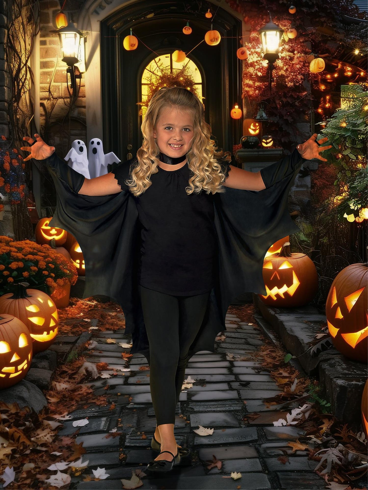 Transform any outfit into a Halloween sensation with the Vampire Bat Wings! The black wings feature a high collar perfect for morphing little girls and boys into blood-sucking vampires. Ideal for Halloween parties and trick or treating.