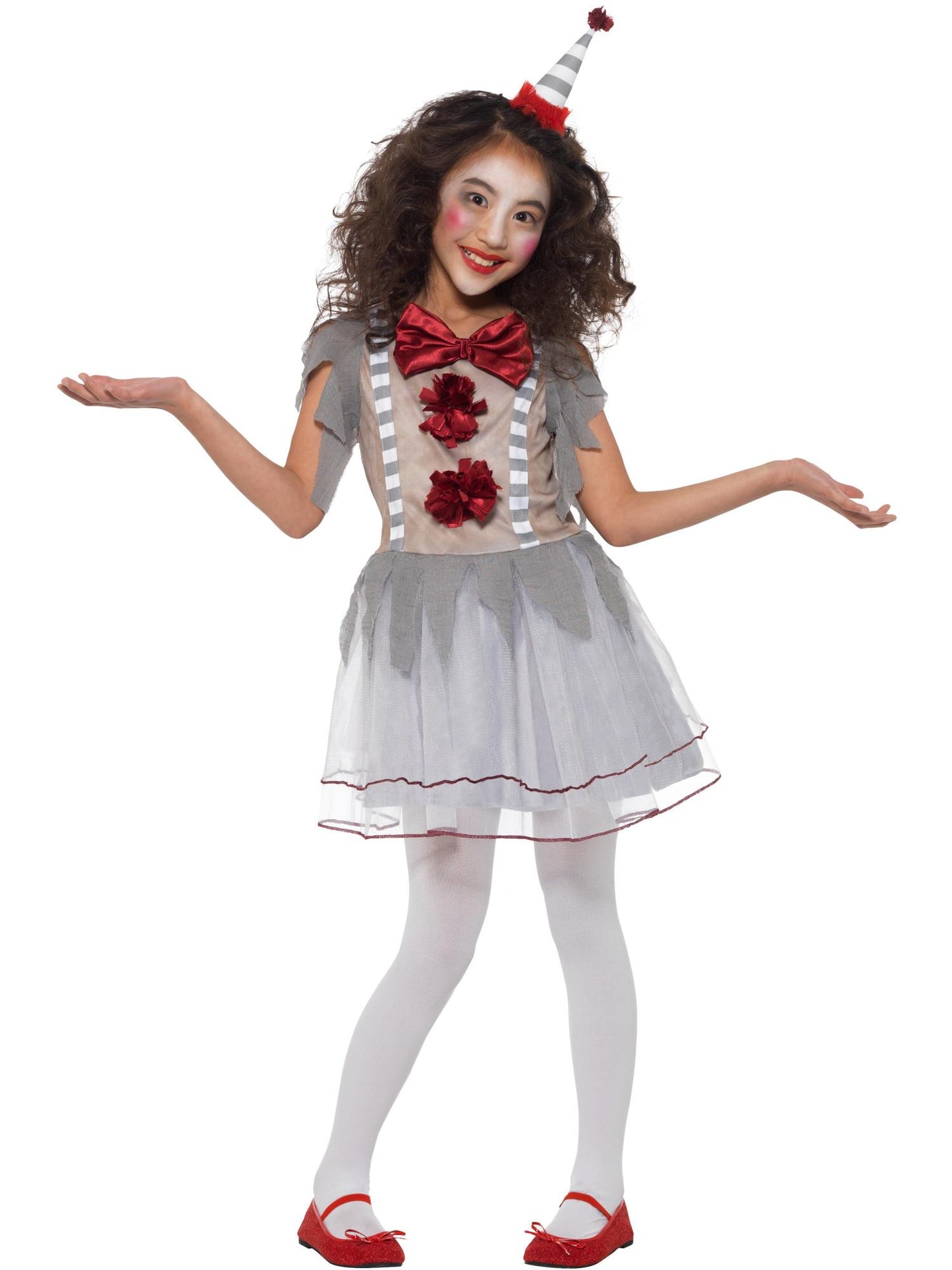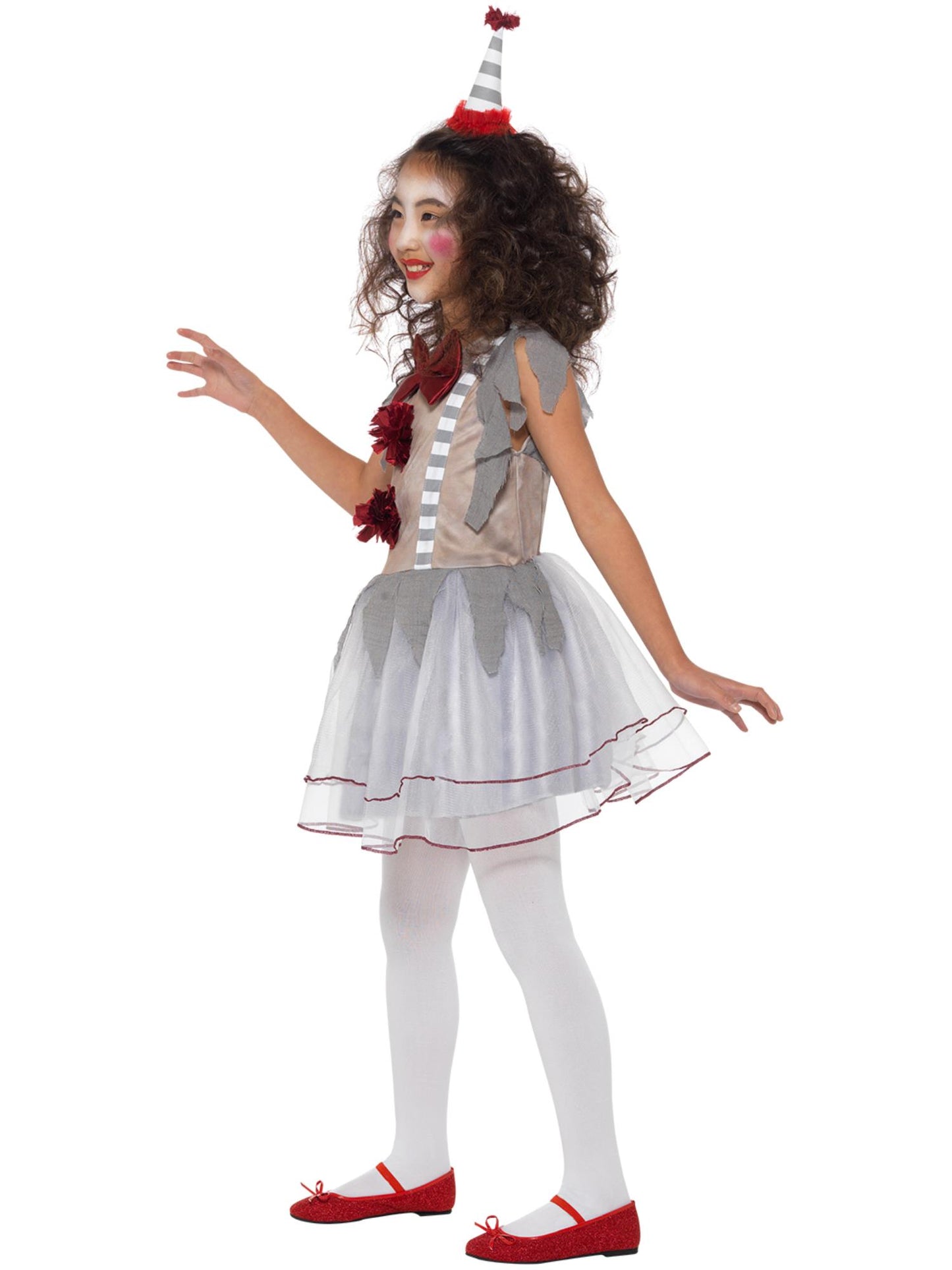 Vintage Clown Girl Costume, Grey & Red, with Dress & Headband.