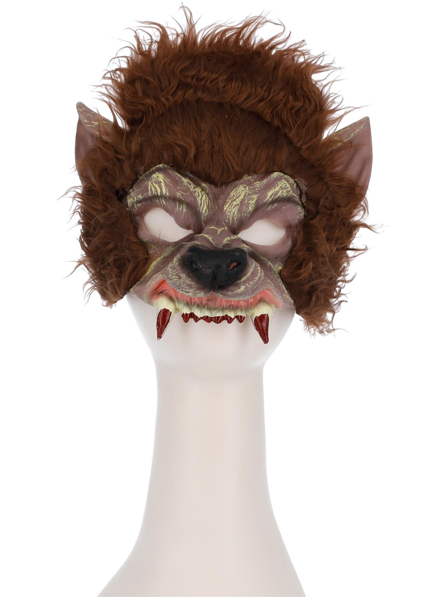 Werewolf Half Face Mask, Brown, with Fur and Teeth
