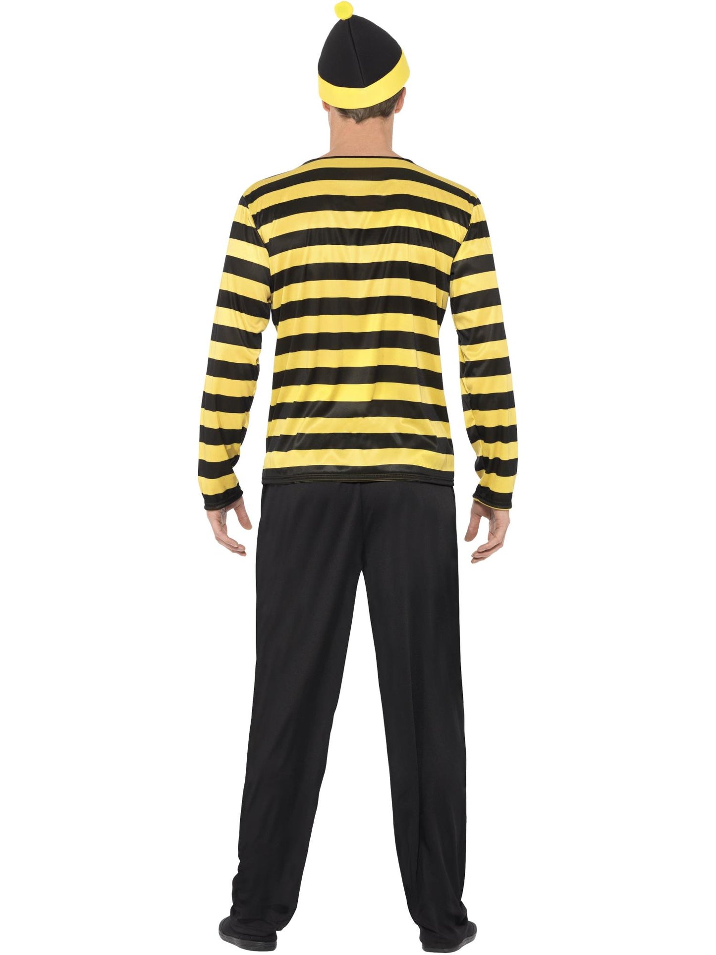 Where's Wally Odlaw Costume, Black & Yellow, with Top, Trousers, Hat, Moustache & Glasses