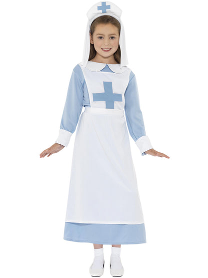 Little girls will enjoy administering some first aid in this cute WW1 Nurse Costume. The blue dress is complete with a mock apron and headpiece, simply accessorise with a stethoscope and pumps!.