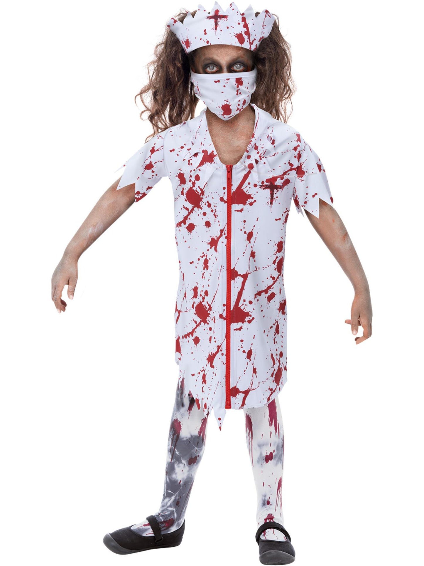 Zombie Nurse Girls Costume, with Dress, Mask & Headband