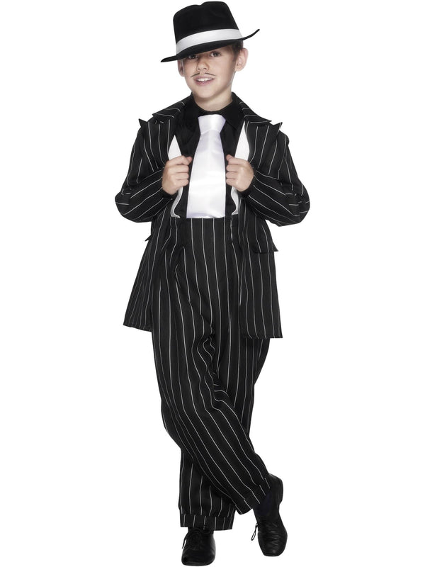 Kids can embrace the roaring twenties with this Zoot Suit Costume. This outfit includes a jacket, trousers and braces. Complete the look with our Al Capone Hat.